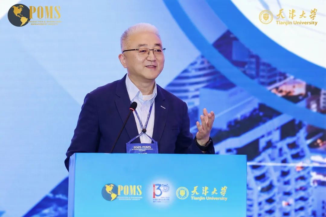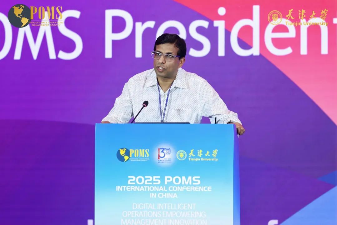 POMS学会执行主任Sushil GUPTA教授发表线上致辞,他向天津大学团队的会议组织工作表达了诚挚感谢。他谈到,POMS国际会议向来为与会学者搭建着浓厚的国际化学术生态,使学者们在跨国界、跨领域的深度交流中,为全球生产运营领域的研究贡献更多富有价值的优化思路。本届大会以“数智化运营赋能管理创新与变革”为主题,精准契合了时代发展的核心趋势。他相信,2025POMS盛会必将为全球生产运营领域带来新的学术洞见,引领行业发展,推动领域研究迈向新高度。