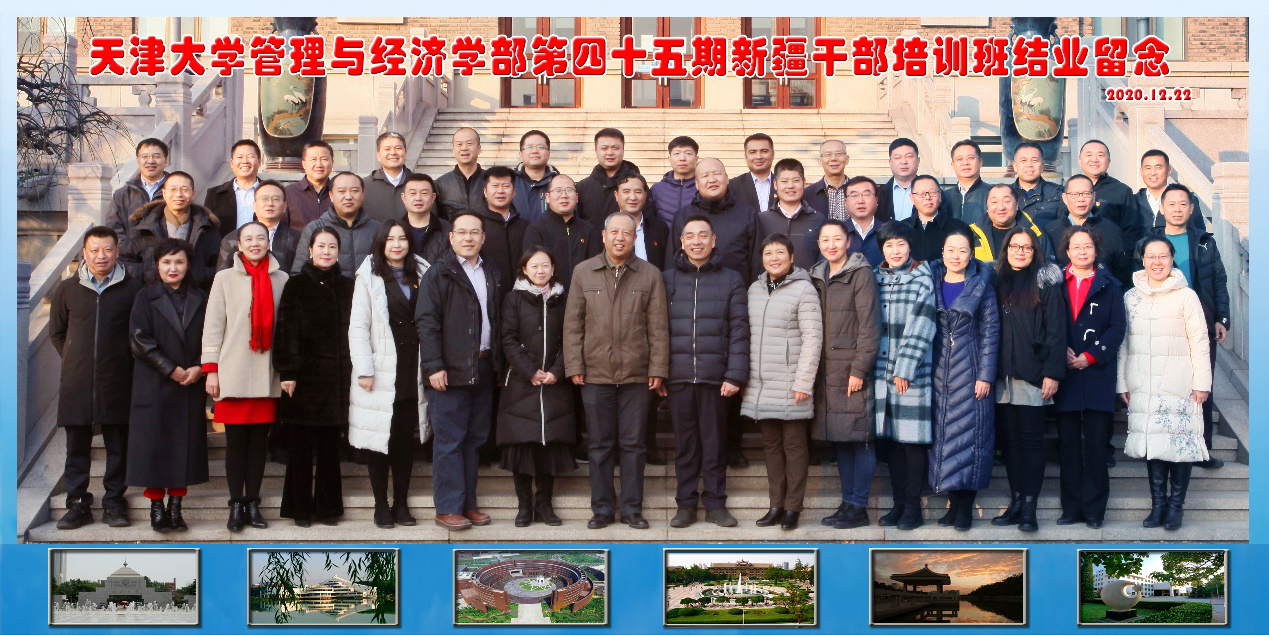12月22日下午,天津大学第45期新疆干部培训班在天津大学举办结业仪式。天津大学党委常委、校长助理、统战部长张力新,天津大学管理与经济学部党委书记马寿峰、天津大学远程与继续教育学院党委书记汪菲出席了结业仪式。仪式由天津大学管理与经济学部副主任毛照昉主持。