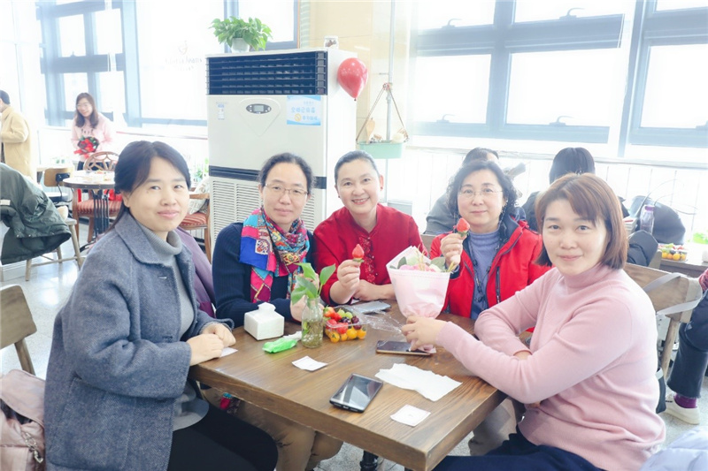 主办方为女教师们准备了芳香四溢的玫瑰花束作为节日礼物。活动采用抽签决定座位,随机座位方便老师们互相结识,更帮助新入职老师尽快融入学部大家庭。