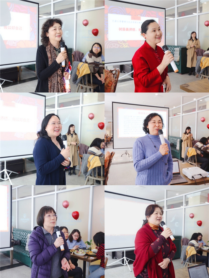 随后,学部资深女教授赵息老师、傅利平老师、王雪青老师、张慧颖老师、李波老师、孙慧老师分享了宝贵的工作和人生感悟。女教授们表示,“作为独立女性,自信是女教师美丽的镜子。”