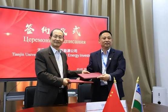 中亚能源公司总经理冯建江指出,跨境校企合作将充分发挥企业的产业与技术优势、高校的科研与人才优势,推动新能源技术创新成果的落地转化。随后,张水波代表天津大学国际工程管理学院与中亚能源公司签署合作框架协议,在科研合作、人才培养、案例基地建设等方面达成合作共识,双方致力于建立长期、稳定的战略合作伙伴关系,相互促进、共谋发展。