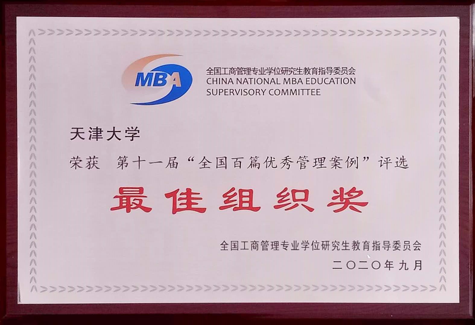 会上,天津大学获评“全国百篇优秀管理案例”最佳组织奖。