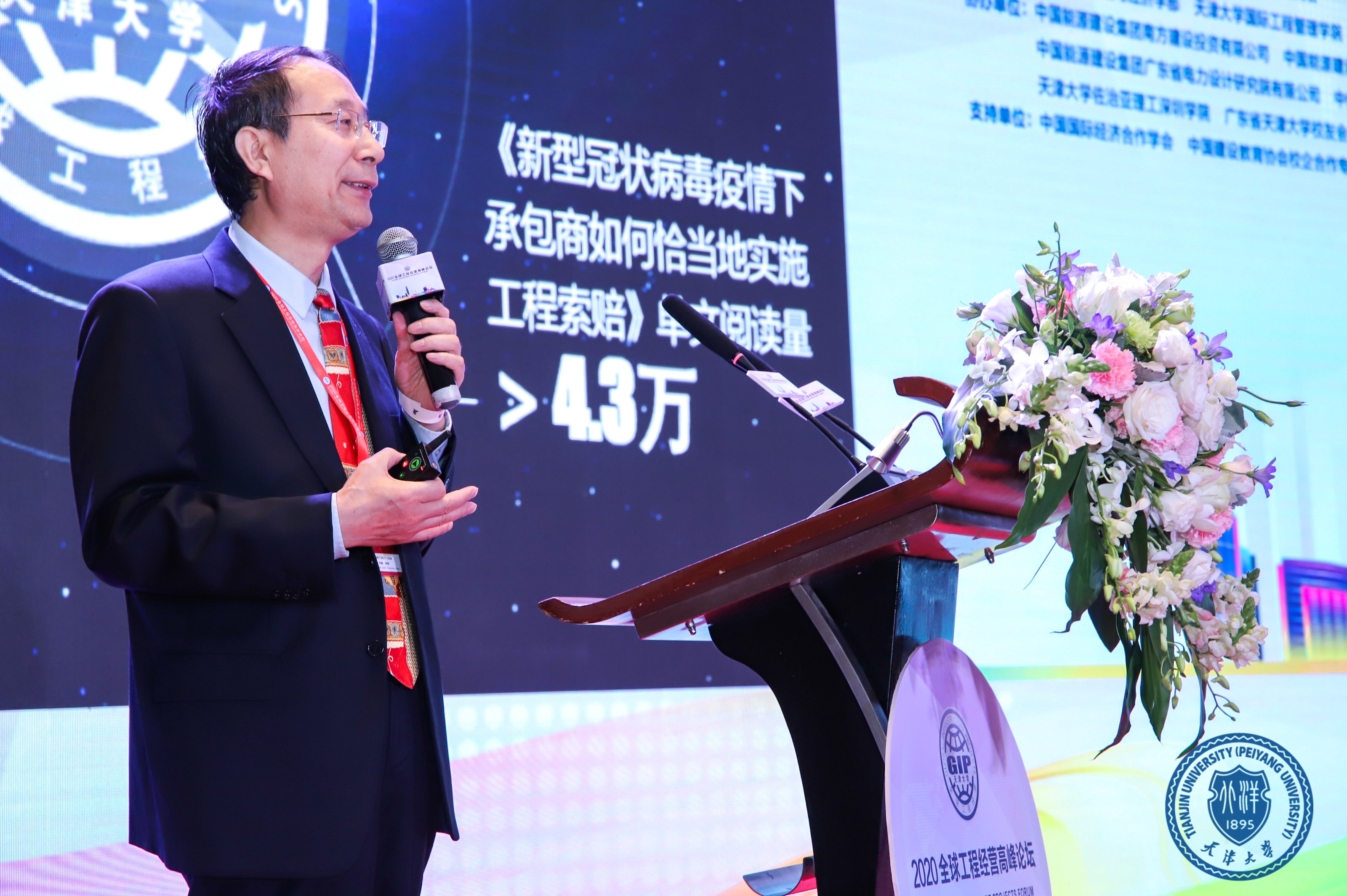 天津大学国际工程管理学院院长张水波教授主持了天津大学全球工程经营学科交叉平台成果发布环节。天津大学国际工程管理学院吕文学教授介绍全球工程经营交叉平台,以“推动学科发展、助力企业经营、打造高端智库、服务国家战略”为宗旨,依托于天津大学的优势学科和多学科交叉,2020年“全球工程经营”公众号各项运营指标增长明显,关注用户人数增长至3.3万,发布原创文章或报告85篇,累计阅读人数达64万,其中,《新型冠状病毒疫情下承包商如何恰当地实施工程索赔》单文阅读量超过4.3万人次。