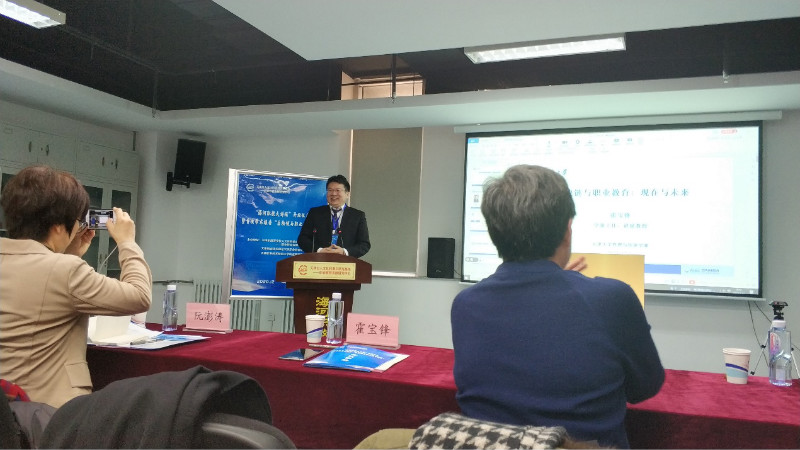 学术报告围绕“区块链与职业教育创新”主题展开。霍宝锋进行了“区块链与职业教育:现在与未来”的主题报告。霍宝锋详细介绍了区块链的发展与应用,从供应链的角度阐述了职业教育与区块链结合的可行性,深入浅出地阐释了区块链技术的特征以及区块链的应用状况,提出了区块链与供应链的双链整合、融合策略,认为运用双链技术不仅可以实现人才培养的可追溯,使得学校管理事半功倍,而且在解决职业教育现实问题上前景广阔。