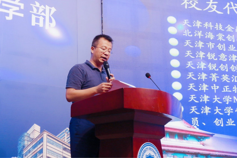 校友代表,天津科技金融中心主任,北洋海棠创投基金合伙人、总经理,天津大学MBA校友会会长何勇军说,他感受到了同学们青春向上的活力,也为同学们成功克服疫情困难、相聚天大表示赞赏。他以“实事求是,兴学强国;贯通融合,深思创新;创新创业,天大担当”为视角,勉励新生在未来的学习道路中为天大的新工科建设、科技创新以及创业创新的领域上添砖加瓦,做新时代的新商科人。