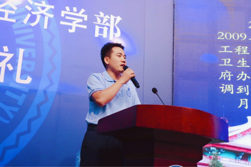 2020级公共管理专业田野代表硕士新生发言。他分享了自己加入天大经管大家庭的喜悦心情,并讲述了参与疫情防控的工作经历,他说,这段经历让自己磨练意志、锻造品格,更加深刻地体会到“做真学问、练真本领”的重要性,并呼吁同学们脚踏实地,方能仰望星空。田野表示,借助学校雄厚的师资力量和优质的学习资源,各位同学一定可以抓住更多机会,创造美好未来。