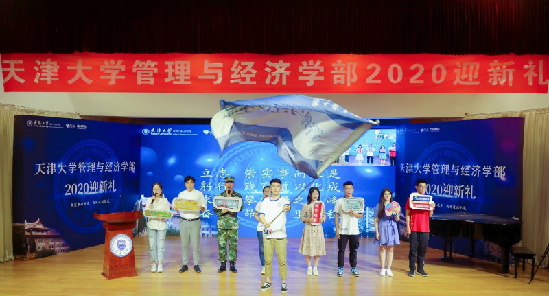 (通讯员:赵博洋 范宁)丹桂飘香,秋高气爽。值此金秋之际,为迎接2020级新生的到来,天津大学管理与经济学部2020迎新礼在天津大学卫津路校区大学生活动中心、C4报告厅连线举行,线上同步直播。天津科技金融中心主任、北洋海棠创投基金合伙人、总经理、天津大学MBA校友会会长何勇军,管理与经济学部党委书记马寿峰,主任霍宝锋,党委副书记袁婷、李庚,副主任杨宝臣、冯楠,各系所负责人、各项目主任等教师代表,与1867名本科生、研究生新生共同参加了开学典礼。典礼由2020级管理科学与工程博士研究生罗航、2017级工商管理专业本科生朱倍、2020级工商管理专业硕士研究生李哲、2020级会计专业硕士研究生左欣怡主持。