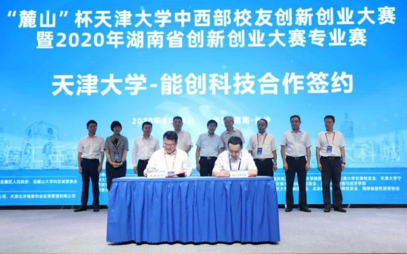天津大学经管学部主任霍宝锋、能创科技总经理劳文代表双方单位签署了《天津大学与能创科技合作协议》。