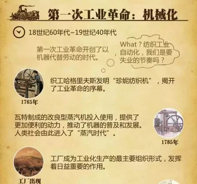 1785年瓦特先生改良了蒸汽机(不是发明,是改良,蒸汽机再早近100年就有雏形了)成为了第一次工业革命的标志物,这之后才逐渐出现来真正意义上的工厂,到19世纪前半叶才发挥出效力。为什么?