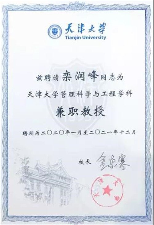 2020年1月,北京金和网络股份有限公司董事长栾润峰受聘为“天津大学管理科学与工程学科兼职教授”。经管学部将进一步推进校企合作,做到资源有效嫁接,优势充分互补。