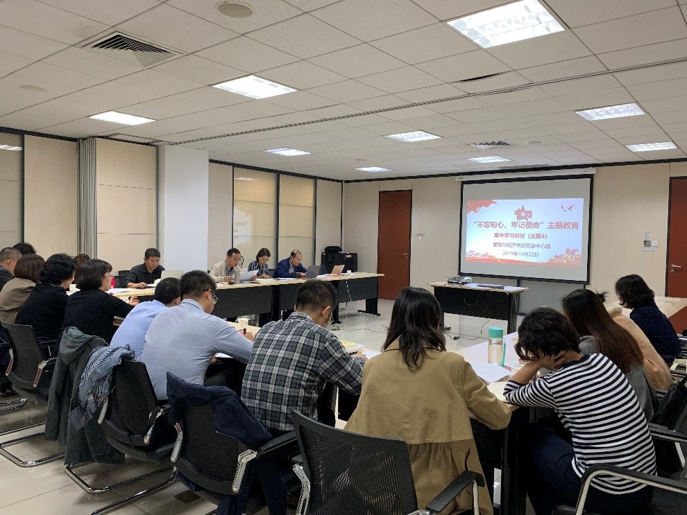 中心组成员同教工党支部书记、学生党支部书记代表一起就“不忘初心、牢记使命”主题教育“落实全面从严治党要求,建强基层党组织”主题开展专题研讨。