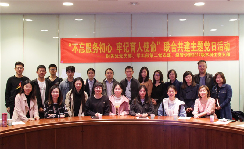 参加活动的人员有财务处副处长苗志勇,学工部副部长李静松,和来自财务处和学工部的各位老师以及经管学部2017级本科生党支部的党员。