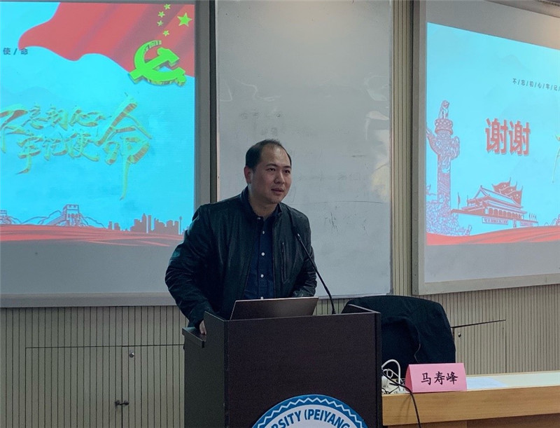 授课中,马寿峰书记首先强调了开展“不忘初心、牢记使命”主题教育的重大意义,同时他指出高校的根本任务是“立德树人”,我们的初心就是培养合格的社会主义建设者和接班人。接下来,他从“从‘主题教育’学‘立德树人’”、“从‘基层组织’思‘立德树人’”、“从‘调查研究’谈‘立德树人’”三个层面对基层组织立德树人能力的内涵、现状和提升途径进行了深入阐释。
