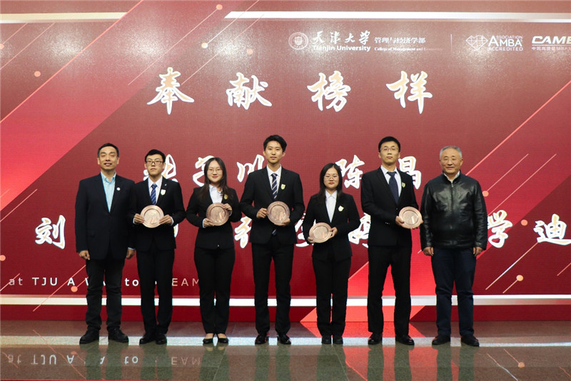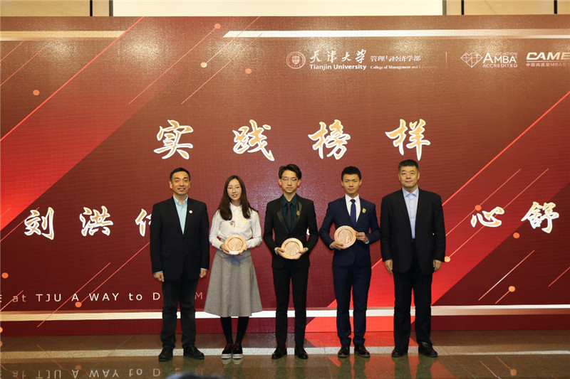 2003级博士校友、天津证监局纪委副书记、学部业界导师谢靖宇,2003级本科校友、浦发银行浦安支行行长、学部业界导师袁丁,2007级MBA校友、天津科技金融中心主任、天津锐意津融企业管理咨询有限公司董事长、学部业界导师何勇军,2010级EMBA校友、天津京创源装饰工程有限公司总经理、天津大学EMBA校友会会长陈林,2011级EMBA校友、浙江宝业集团副总经理、学部业界导师童元明,天津贵金属交易所有限公司人力资源部副总经理、业界导师熊卫华,中国建筑六局人力资源部(干部人事部)副总经理、业界导师鱼洪文;天津大学管理与经济学部党委书记马寿峰,主任霍宝锋,党委副书记袁婷、李庚,副主任杨宝臣、冯楠、刘钰出席了本次颁奖礼。