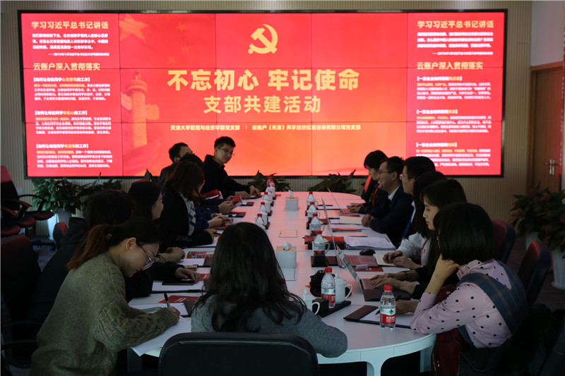 (通讯员:宇文慧 摄影:刘洋)12月4日,天津大学管理与经济学部综合服务中心第二党支部、金融系党支部开展“不忘初心、牢记使命”联合党支部活动,赴云账户(天津)共享经济信息咨询有限公司开展党建共建活动。