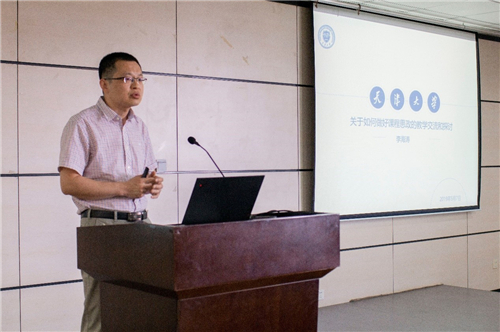 在典型教学案例交流环节,李海涛借助两个教学案例就如何做好课程思政进行了示范。