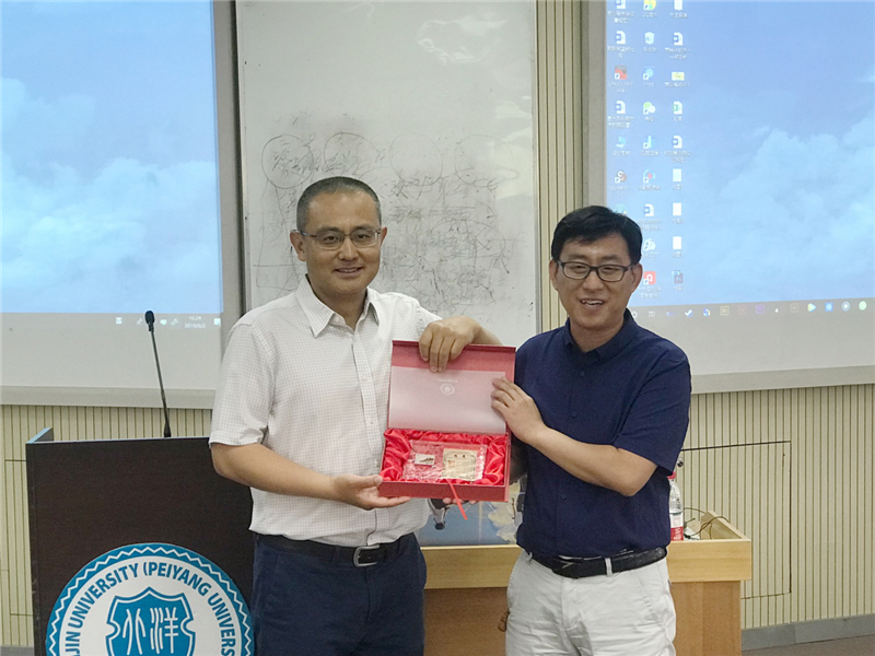 最后,管理与经济学部组织与战略管理系系主任潘静洲老师代表学部师生为胡明先生颁发纪念品并表达谢意。至此,活动圆满结束。