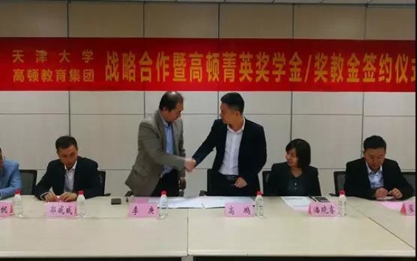 李庚书记与高鹏总经理分别代表双方在战略合作协议上签字,潘晓睿处长和高鹏总经理分别代表双方在奖学金/奖教金捐赠协议上签字。最后,潘晓睿处长作总结致辞。她指出,今天是个好日子,双方签署了战略合作协议和奖学金、奖教金捐赠协议,高顿教育集团虽然不是天津大学的校友企业,但仍然选择在天津大学设立奖学金,体现了高顿教育集团重视人才培养的理念和强烈的社会责任感,同时这也是对天津大学的认可,希望天津大学与高顿教育集团强强联合,发挥各自优势,互利共赢,为我国高等财经教育做出贡献。