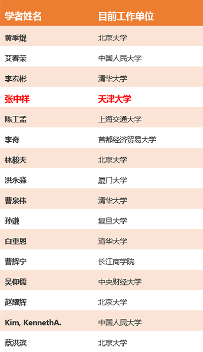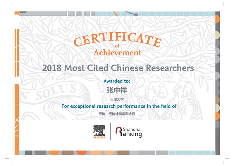 继连续位列经济、经济计量学与金融领域2015年、2016年中国高被引学者榜单第4位,天津大学马寅初经济学院院长,国家能源、环境和产业经济研究院院长张中祥连续五年入选经济、经济计量学与金融领域“中国高被引学者”榜单。
