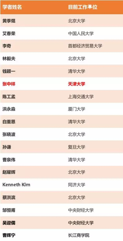 2018年“经济、经济计量学和金融”领域中国高被引学者榜单