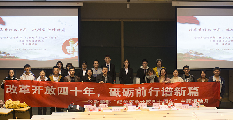 1978年以来,我国各项事业取得了举世瞩目的成就。在中国共产党的领导下,中国人民成功探索出了一条符合中国特色的社会主义发展道路。值此改革开放四十周年之际,管理与经济学部党委学工办特设立“纪念改革开放四十周年”主题活动月。依托读书人协会、社研会、社团团委等学生社团,面向管理与经济学部本、硕、博3200余名学生,将开展读书分享会、主题党日、主题团日、舞台剧表演、知识竞赛等形式多样、内容丰富的系列活动,旨在引导学生了解中国改革开放以来的发展历程,学习中国改革智慧,增强学生对中国发展道路的认同感,帮助学生在提升专业能力的同时拓宽视野,提升学生的时代使命感。