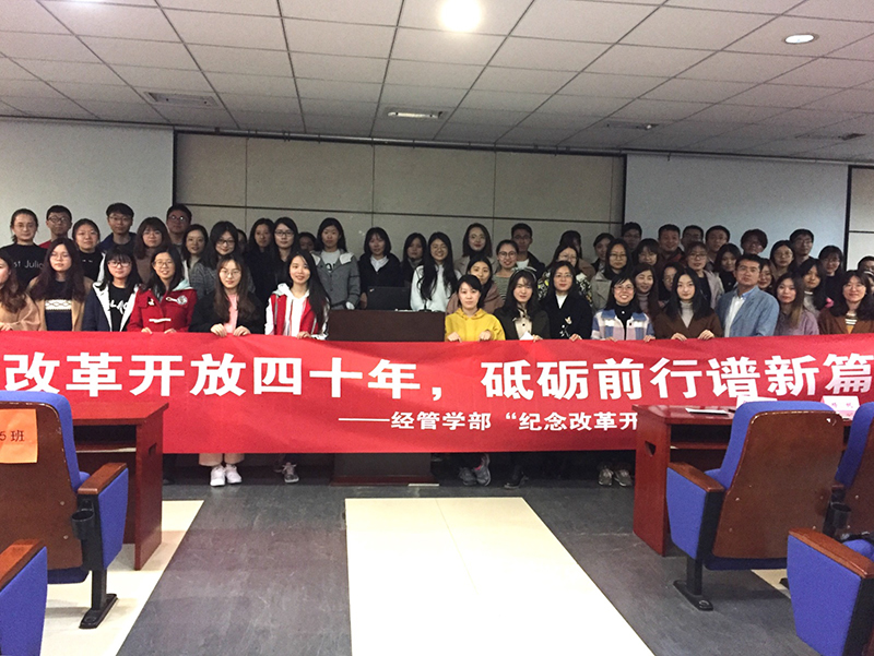 为深入宣传习近平总书记全面深化改革的思想,回顾改革开放四十周年来中国取得的伟大成就,贯彻落实改革开放四十周年精神,增强同学们的爱国热情、激发同学们的民族自尊心和自豪感,让同学们重温国家奋斗发展的历史,管理与经济学部2018级硕士生全体党支部于11月27日晚18:30在25A816举行了“改革开放四十年,砥砺前行谱新篇”主题读书分享活动,学习改革开放精神,并通过PPT展示的形式和大家分享,根据展示情况对各党支部进行评比表彰。