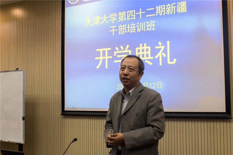 最后,天津大学党委常委、校长助理张力新代表校党委、校行政对新疆班同学表示热烈欢迎。他回顾了天津大学创办以来的历史沿革,办学理念,在中国高等教育的地位和对中国高等教育发展做出的贡献。新疆班从1990年到至今已举办41期,天津大学各级领导对新疆班非常重视,29年来,学部连续为新疆自治区培训了2000多名各级干部,其中有维吾尔族、哈萨克族、回族、蒙古族、锡伯族、东乡族等民族干部800余人,遍布新疆各个地州市,新疆班已成为天津大学智力援疆靓丽品牌。他希望同学们认真学习,勤于思考,通过学习开拓视野,提升管理能力,为新疆发展做出更大贡献。