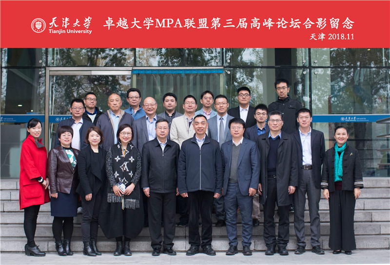 2018年11月4日,由全国公共管理专业学位研究生教育指导委员会、卓越大学MPA联盟指导,天津大学管理与经济学部公共管理学院、MPA教育中心承办的卓越大学MPA联盟第三届高峰论坛暨MPA教学特色交流研讨会在津举行。来自重庆大学、大连理工大学、东南大学、哈尔滨工业大学、华南理工大学、天津大学、同济大学、西北工业大学卓越大学联盟成员单位及南开大学、天津财经大学、天津师范大学的数十位专家学者参会,共议中国公共管理专业硕士教育发展课题。