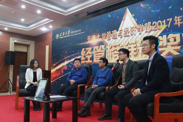 之后,尚洁主持开展了嘉宾访谈环节。四位天津大学管理与经济学部业界导师和专业导师就每个话题都提出了精辟独到的见解。嘉宾们内容充实的分享、幽默风趣的谈吐让颁奖现场的气氛达到高潮。