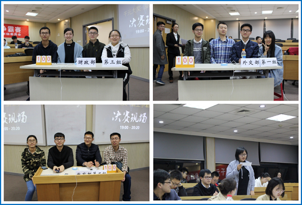 2018年3月30日晚,决赛之战如期在25楼3A教室举行,本科生辅导员杨帆、辛科霆,兼职辅导员张爽、宋磊,校研究生会主席罗大力、学部学生会主席贾慧茹担任决赛评委。“请问您对中美贸易磋商有何评价”,“请问您如何回应个别国家对‘一带一路’倡议透明度的怀疑”,“请问您认为有什么举措可以保证高考改革后的排名公平”。决赛的角逐更加激烈,记者提问更加专业精准,各位新闻发言人也是侃侃而谈、金句频出,引得观众和评委阵阵叫好。抢答环节,选手们个个严阵以待,只待一声令下便开始抢答。选手们冲刺冠军的激情和智慧火花,几度将赛场气氛推向高潮。