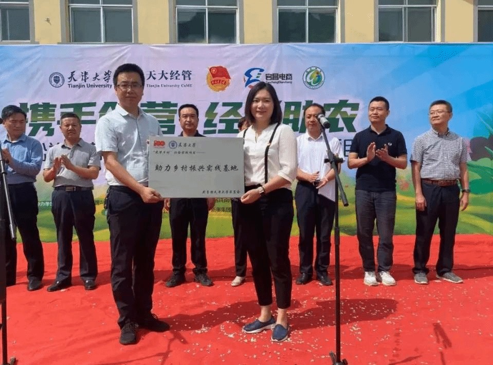 管理与经济学部团委副书记、党委学生工作办公室副主任李艺为宕昌县电商中心实践育人基地进行授牌。