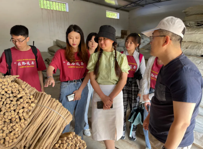 随后,实践队前往八力乡大东山中药材农民专业合作社进行考察,在合作社理事长温成娃、经理温雅兰的带领下参观了药材加工厂,深入了解药材加工流程、利润分配机制,实践队向合作社负责人就增加农产品附加值、延长产业链等问题提出建议。