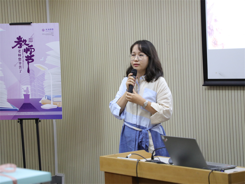 袁婷代表学部工会送上了节日的祝福,并提出,工会是“职工之家”,工会干部是最可信赖的“娘家人”,学部工会将继续忠诚党的事业,竭诚服务职工,让更多的教职工感受到家的温馨。同时,学部工会随时欢迎老师们分享建议,努力为老师们排忧解难。