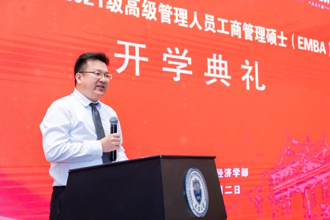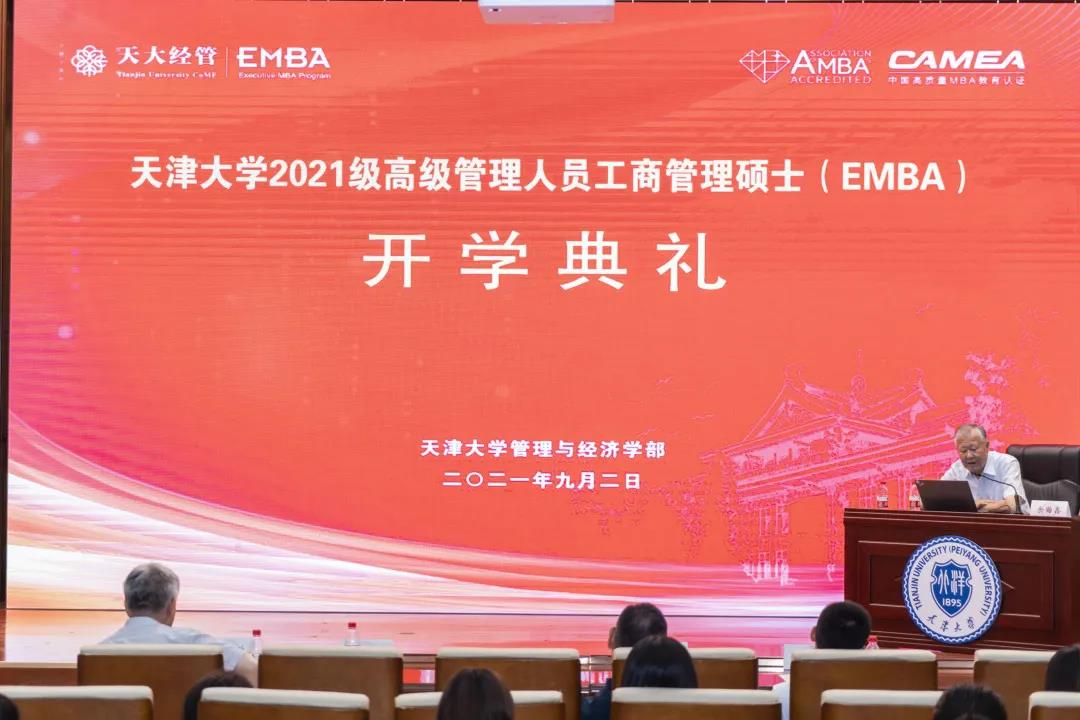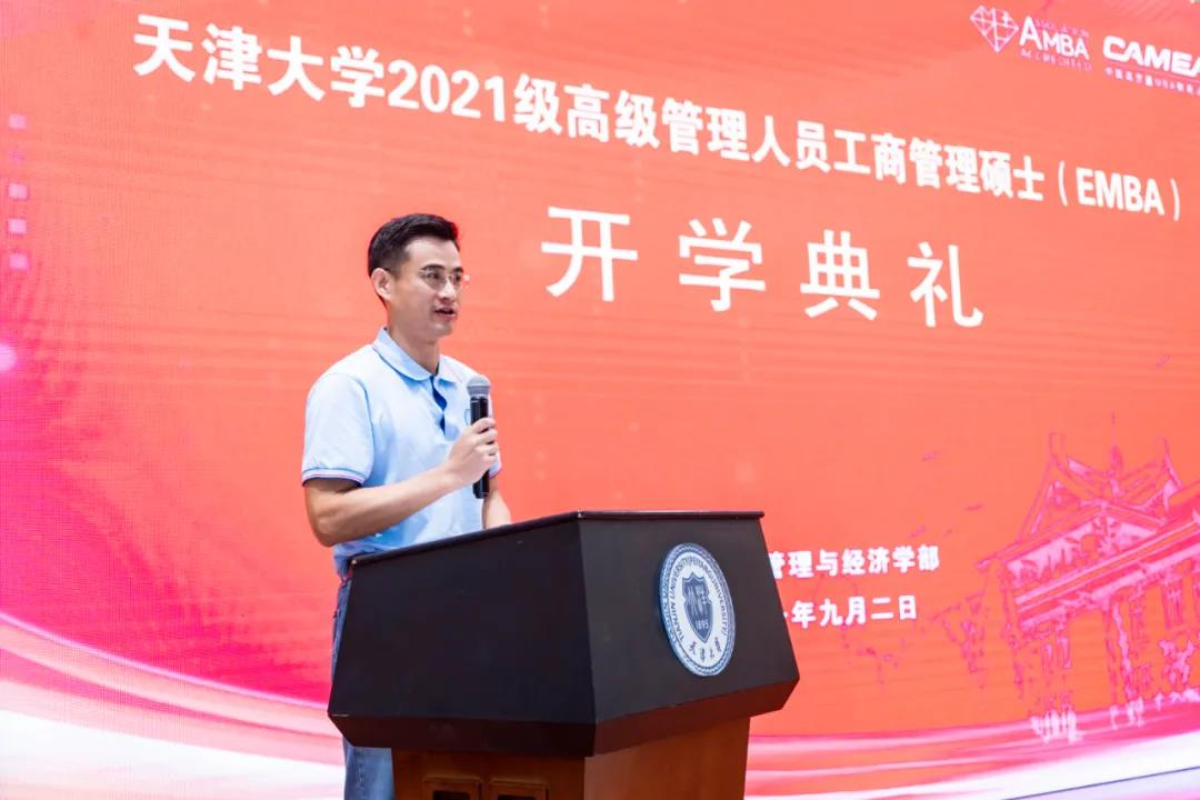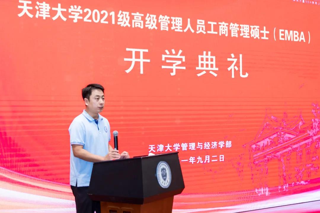 2020级EMBA学生代表毛洪成及2021级EMBA新生代表吴科峰分别发言。开学典礼在天津大学校歌中结束。