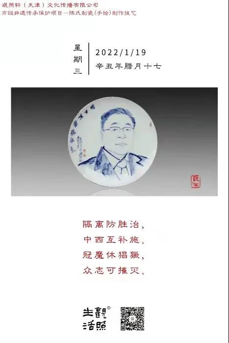 觀照轩曾邀请多位著名书画家以自己的方式,创作出大量符合时代精神和当代审美的作品,传递众志成城的情感和战胜疫情的力量。比如,著名画家姜志峰老师将奋在抗疫前线的天津医护人员以人物画像的绘制方式记录在瓷板上。