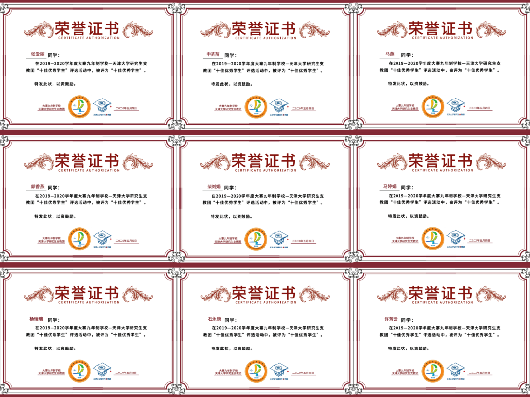 2019年,参与国家西部志愿者计划,前往“千年药乡”宕昌支教一年,助力天大教育扶贫事业。作为团长,主动申请前往乡村学校大寨九年制学校支教,为 80余名初三毕业年级学生担任物理老师和生物老师。