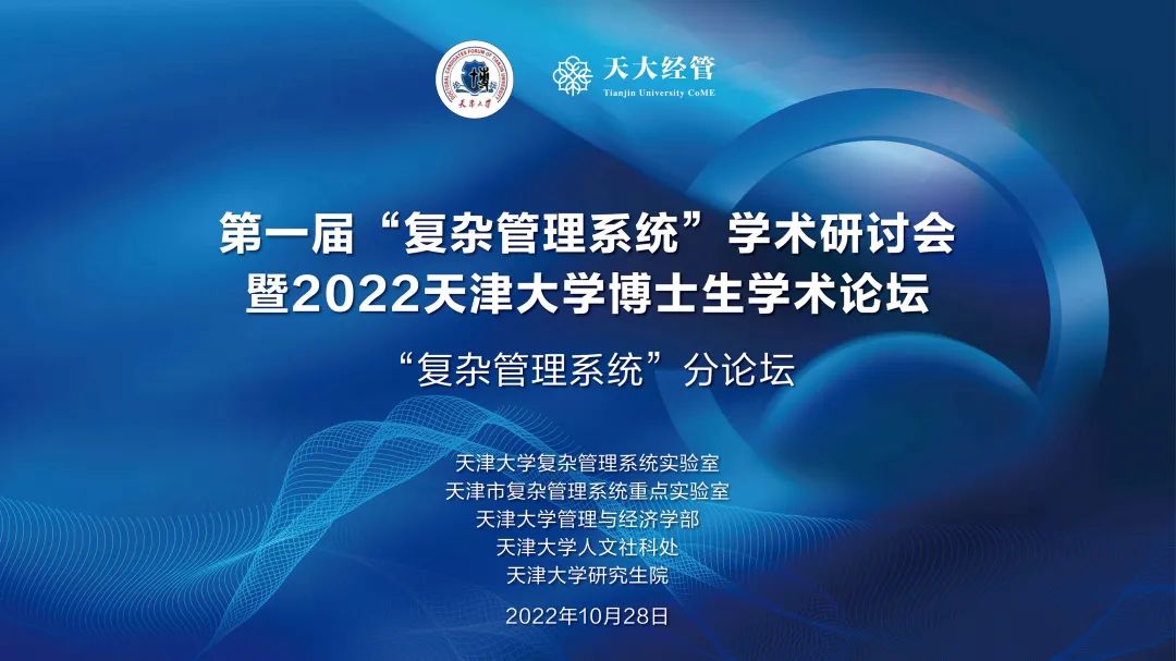(本站讯 通讯员:马中臣)10月28日,第一届“复杂管理系统”学术研讨会暨2022天津大学博士研究生学术论坛——复杂管理系统分论坛成功举办。研讨会围绕“复杂管理系统”的会议主题深入研讨了相关领域的最新进展与实践经验。会议采用线上线下相结合的方式进行,累计约400人次共享了这场“学术盛宴”。