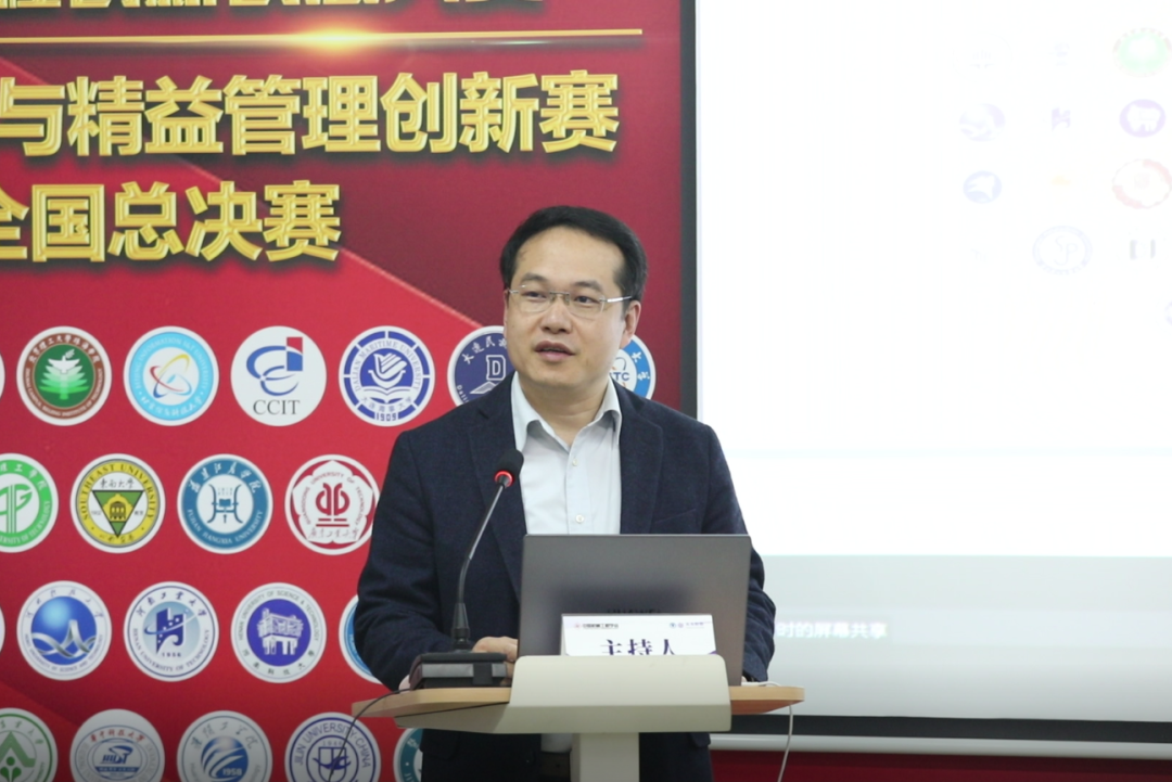 天津大学管理与经济学部副主任、国际生产与经营管理学会(POMS)副主席、大赛组委会执行主任毛照昉教授代表组委会对参赛队伍表示欢迎,感谢专家评委对大赛的支持,并介绍了大赛创办五年来的赛事情况以及本次全国总决赛的评委组成与评分标准等。本次工业工程与精益管理创新赛启动以来,在全国引起了轰动效应,共收到来自23个省、自治区和直辖市、96个高校的326支代表队提交的参赛作品,凸显大赛的影响力和辐射面。共有15个本科生组、9个研究生组进入总决赛,总决赛通过腾讯会议“线下+线上”形式举行,部分评委到决赛现场,全部参赛队伍在线展示,并全程通过海棠直播平台在线直播。