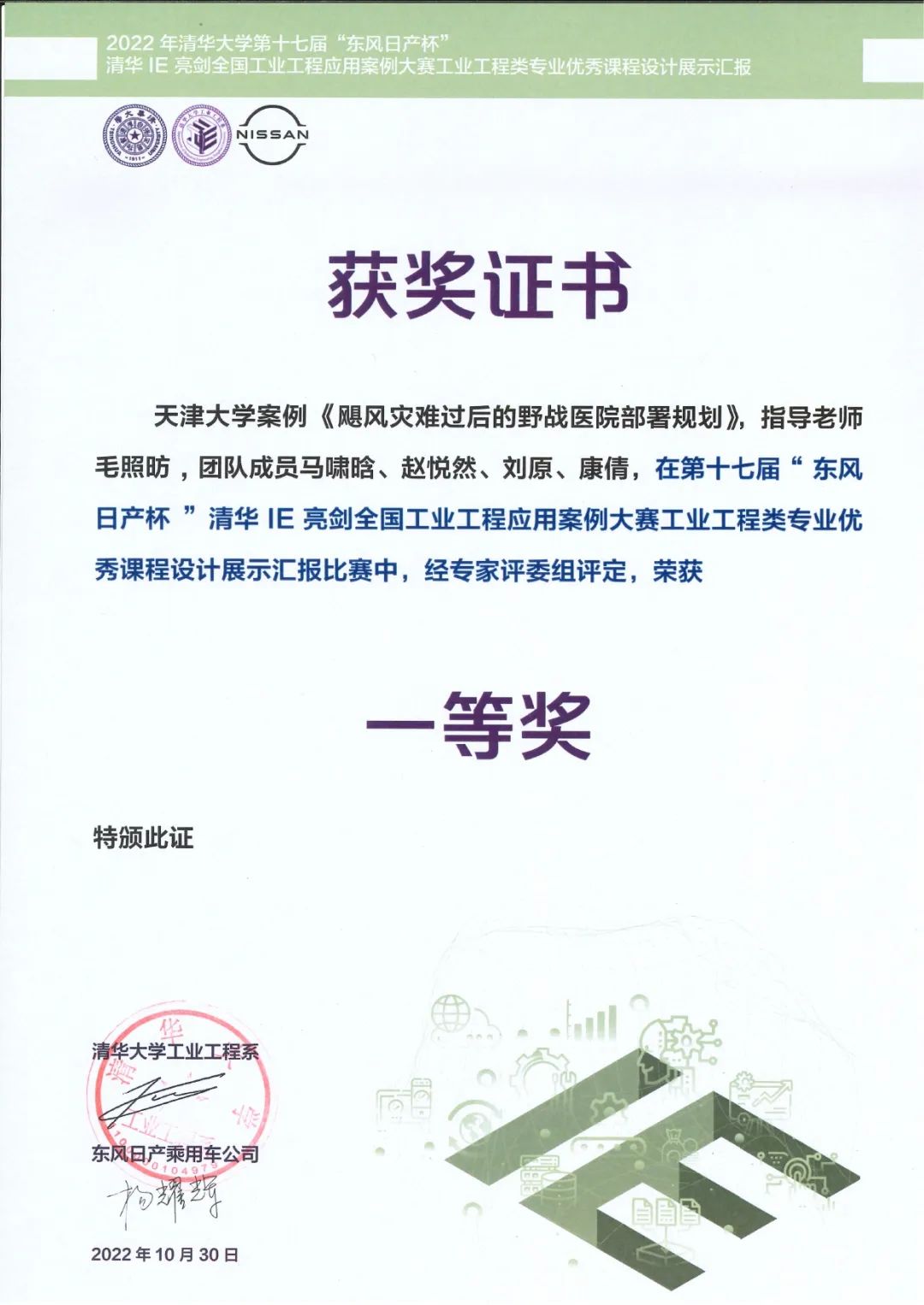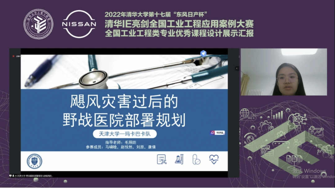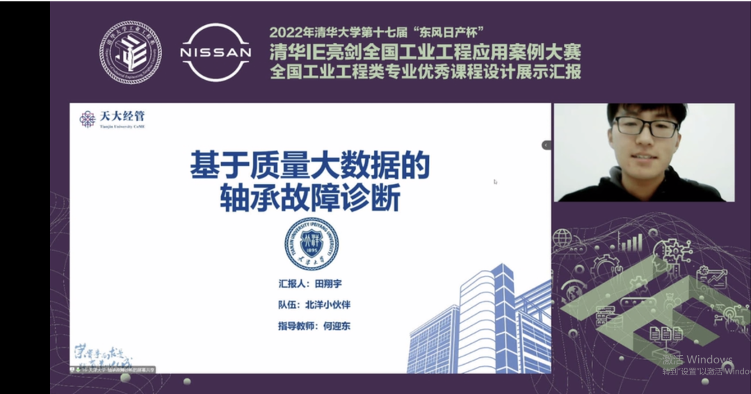 本站讯(通讯员:何迎东 田翔宇 赵悦然)10月29-30日,由清华大学主办的第十七届“东风日产杯”清华IE亮剑全国工业工程应用案例大赛决赛在线上成功举行。优秀课程设计展示赛道吸引了包括天津大学、上海交通大学、西安交通大学、东北大学、西北工业大学、电子科技大学、重庆大学、南京航空航天大学等全国多所院校参与,共有30支队伍进入决赛。天津大学在本次赛事中实现新突破,首次获得第十七届“东风日产杯”清华IE亮剑全国工业工程应用案例大赛工业工程类专业优秀课程设计展示汇报比赛特等奖和一等奖。