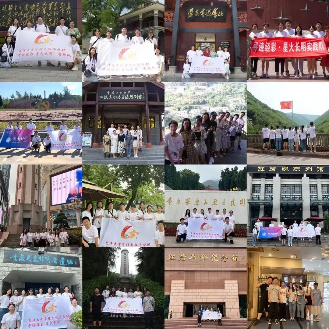 2022年,天津大学“寻迹经彩· 星火长明”实践队组织开展红色精神学习主题社会实践,实践队员寻访全国130余处红色场馆,录制红色宣讲微党团课80余节,打造思政精品课程,从红色遵义城到悠悠赤水河,巍巍青杠坡,天大学子的身影,遍布全国各个角落;实地探寻红色初心故事,面对面采访老红军、老党员等39位前辈,将革命老先辈的故事从口口相传凝聚成氤氲墨香,制作成思政教育系列读物—“初心故事集”;立足红色场馆建设,聚焦红色教育路径探索,深入挖掘场馆背后问题,量化红色教育影响,基于科学理论与研究范式,分析调研数据,产出调研成果,创新红色教育模式;重温长征历史,庚续红色血脉,将一路所见所感制作成原创红色歌曲《寻迹经彩·重走长征路》,于八一建军节当日正式发布,致敬革命军人前辈。