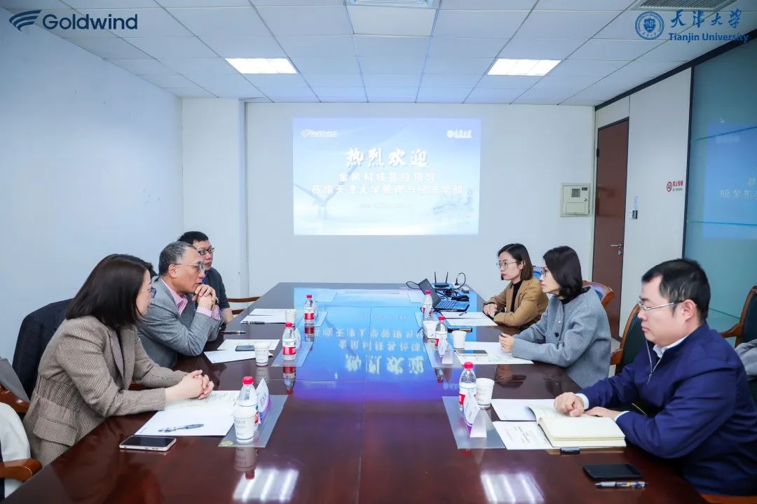 开班仪式结束后,管理与经济学部党委副书记袁婷等与金风科技各位领导举行座谈会,就双方落实以风电行业人才培养为切入点的产学研基地合作开展事宜进行讨论,并探讨未来在人才培养体系梳理及开展形式、校企联合案例的产出以及学生就业实习等方面的合作意向。