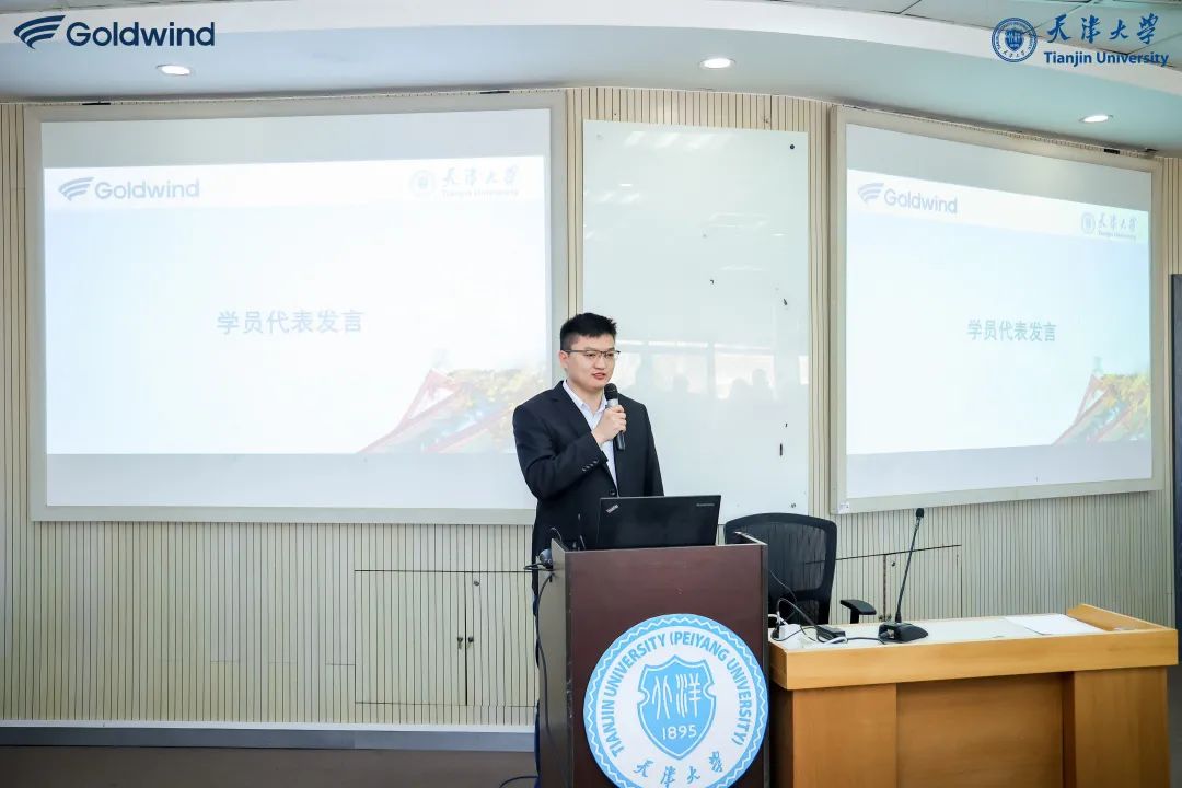 吴凯代表金风科技感谢天津大学对于此次人才培养课程设置、师资安排及组织实施等方面做出的周到安排,并对学员们的学习热忱及成果收获给予了高度肯定。面对新能源业务日渐复杂的挑战,吴凯以“千里之行始于足下,循序渐进,持续学习”为寄语,希望各位学员借助天津大学此次国际工程管理全链条知识的学习梳理,进一步提升自身管理视野与认知维度,并在今后的项目管理实践中善总结、勤反思、凝智慧,建立以风电场为交付物,面向全生命周期电力交付的工程项目管理能力。与此同时,吴凯希望大家在回归工作岗位后,能够进一步增进跨业务单元团队间的协作沟通、并保持与天大专家教授团队之间的互动交流。