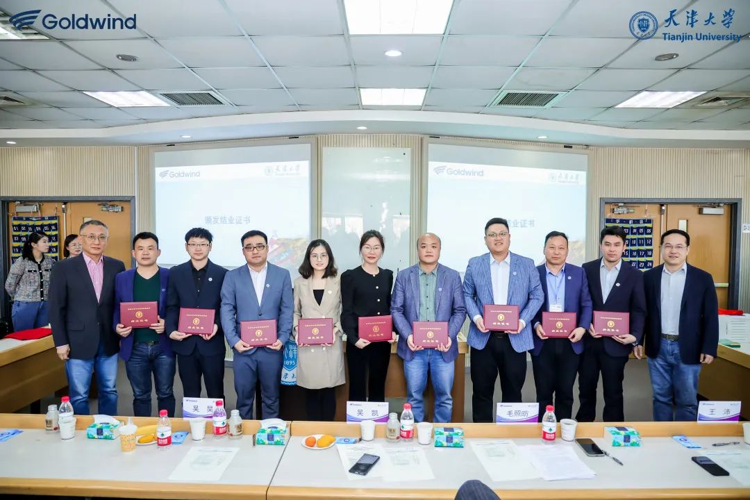 天津大学管理与经济学部党委书记毛照昉与金风科技副总裁兼金风国际董事长吴凯为学员们颁发结业证书,并祝贺大家顺利结业、圆满完成学习任务。