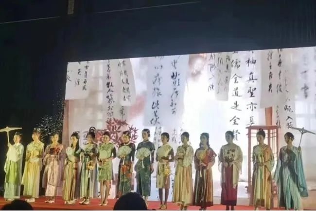 班级风采展示中,各个班级同学们几乎全员参与,展示着属于本班的独特风采。一班的武术燃爆全场,二班的天籁之音穿透心灵,三班的走秀飘逸优雅,四班的舞蹈引领全场,五班的合唱勾起青春回忆,六班的书法记载不朽华章,七班的双语唱出两地情谊,八班的小品体味职场人生。