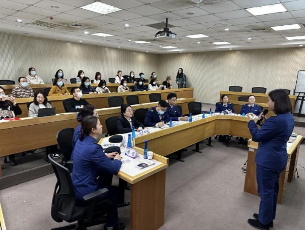 铁建交运天津地铁一号线公司客运中心下瓦房站区海光寺站员工为教师们宣讲了公司的经营理念,地铁线路的换乘及联程优惠,车站内进出站的注意事项及安全知识,暖心服务的具体举措,并现场进行了礼仪展示。