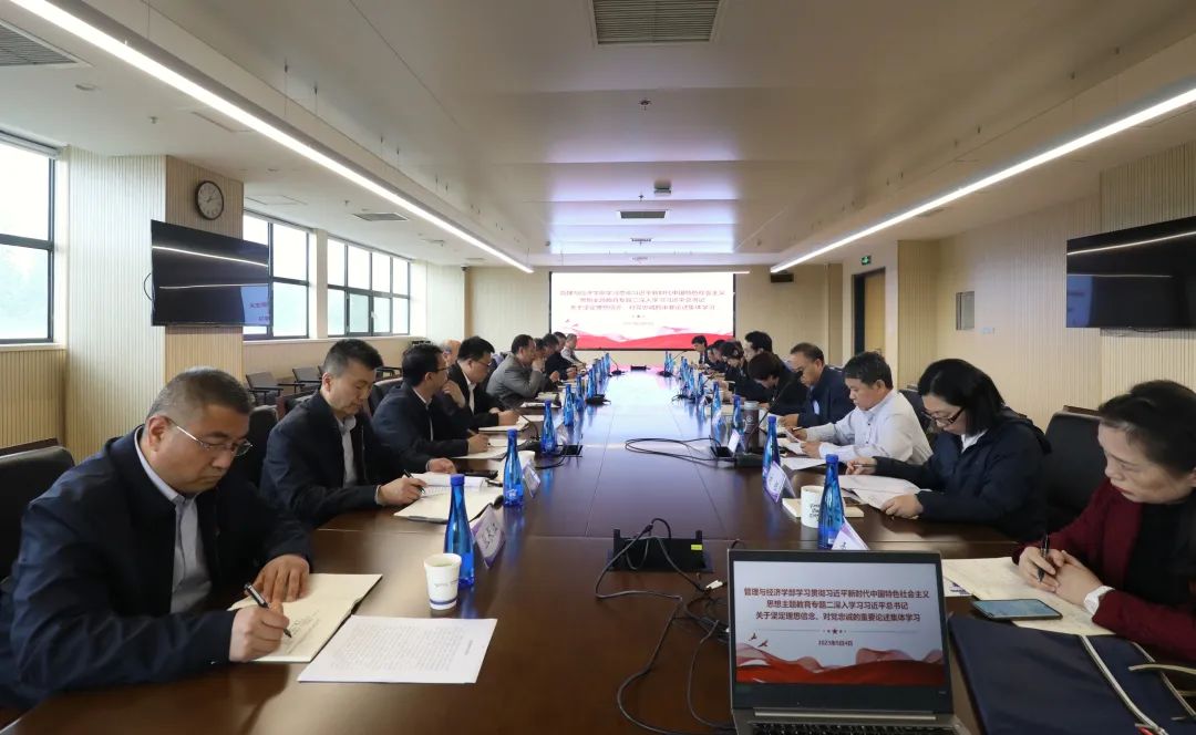 本站讯(通讯员:宇文慧 摄影:唐宇涵)5月4日,管理与经济学部学习贯彻习近平新时代中国特色社会主义思想主题教育专题二集体学习在第25教学楼B527举办,学习主题为坚定理想信念,政产学研协同助力“一带一路”高质量发展。天津大学党委书记杨贤金、学校党建督导员贡振宇、学校主题教育领导小组办公室成员、学部党委理论学习中心组成员、天津大学第48期新疆干部经济管理培训班(以下简称“新疆班”)学员代表出席会议。集体学习由管理与经济学部党委书记毛照昉主持。
