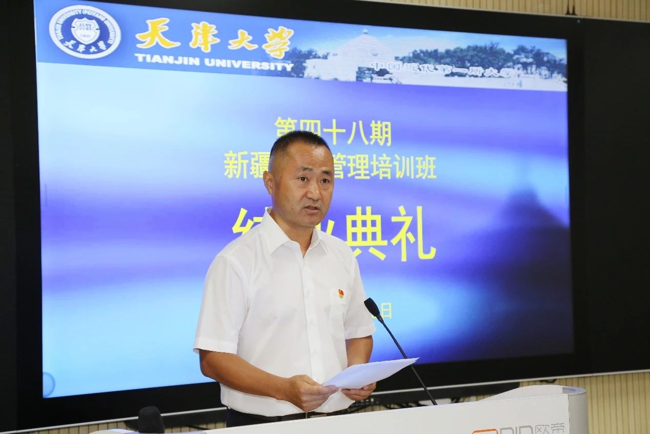 会上,蔡建爽宣读了天津大学第48期新疆干部经济管理培训班结业决定并颁发了结业证书。