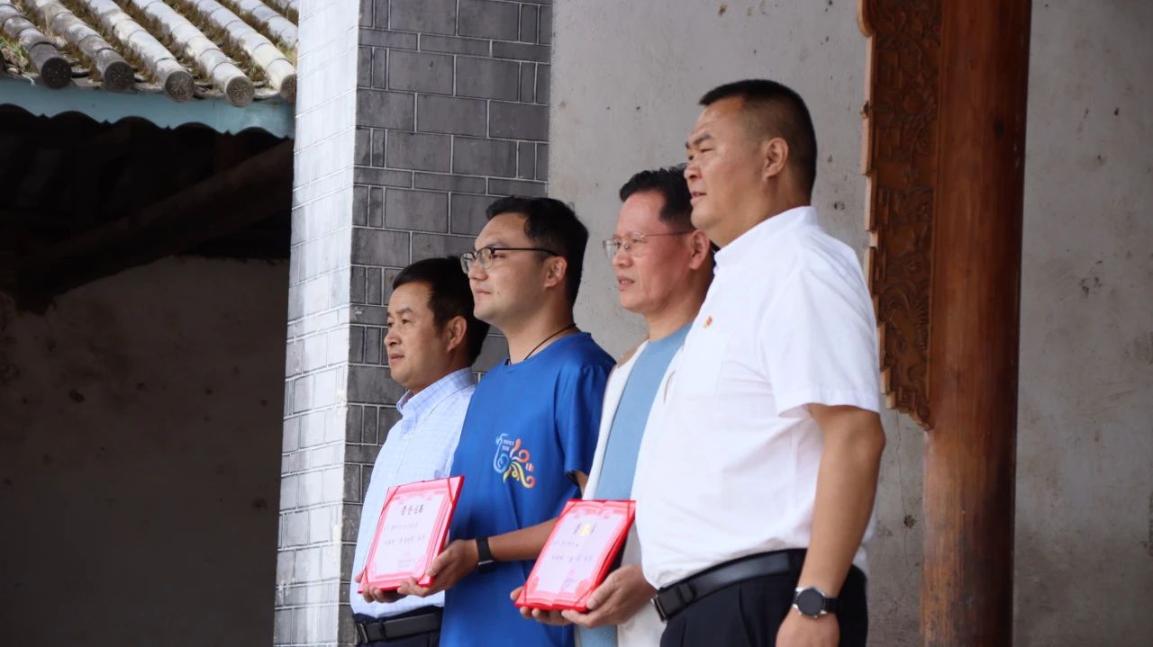仪式最后,为感谢在凤羽乡村教育公益事业中作出特别贡献的爱心人士,李伟钢与王国亮为实践活动与教育基金发起人童元明、以及多年坚守支教工作的经管学部指导教师赛布丁江·艾则孜颁发“荣誉村民”证书。