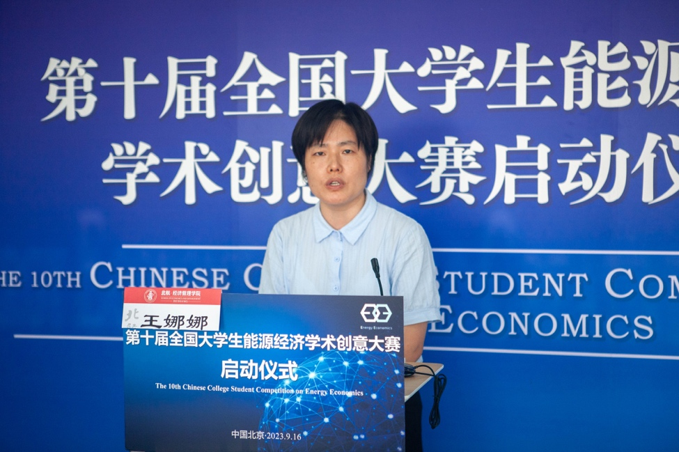 李玮教授首先从大赛的参赛对象、组织构成和大赛章程等方面对大赛进行了简要介绍,随后逐一展示了大赛的历史与发展、大赛的规范和大赛的特色。李玮教授提出,全国大学生能源经济学术创意大赛面向国家战略,是提升学生们团队合作和科学家精神的有力途径,更是高校践行“三全育人”的重要渠道。最后,李玮教授介绍了本届赛事的区域赛承办单位,对承办单位的申办流程、赛事流程、作品要求等方面对区赛和校赛承办单位职责展开了详细介绍。