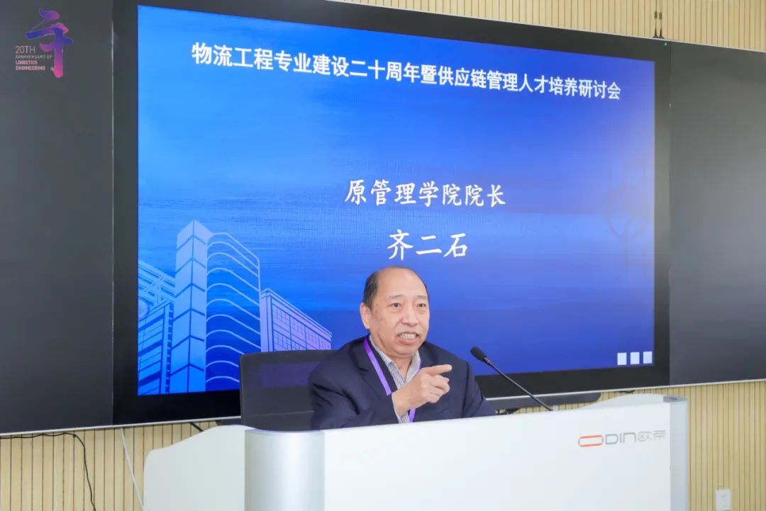 齐二石教授向在座师生、校友深情回顾了物流专业建立和发展的故事,强调了心理韧性和坚持对个人发展的重要性,他表示,希望运营系培养的人才将个人追求与国家发展联系起来,为国家富强、社会进步作出贡献。